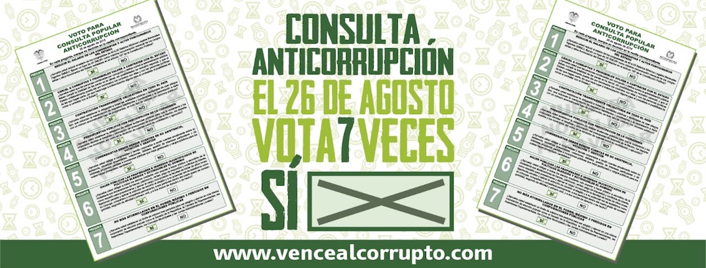 Una oportunidad sin precedentes tendrá el pueblo colombiano este domingo 26 de agosto, cuando pueda dar su voto contra la corrupción al marcar 7 veces si. Más allá que los 7 puntos sean o no constitucionales, legales, viables, posibles, repetidos o no…, lo más importante de esta jornada es la asistencia masiva a votar este referendo.