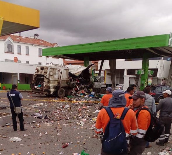 Este martes 17 de julio a las 9:40 de la mañana explotó en la estación de servicio Los Angeles o Brío de la variante, un carro recolector de basura de la empresa de servicios publicos Emserchía.