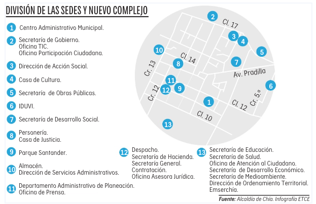 Se trata de una obra en la que se centralizarán las sedes de las 14 secretarías del gobierno de Chía, el Concejo, la Personería y la Casa de Justicia, que en la actualidad operan en seis sedes del centro del municipio, cuyo arriendo le cuesta a la administración cerca de 1.104 millones de pesos al año.