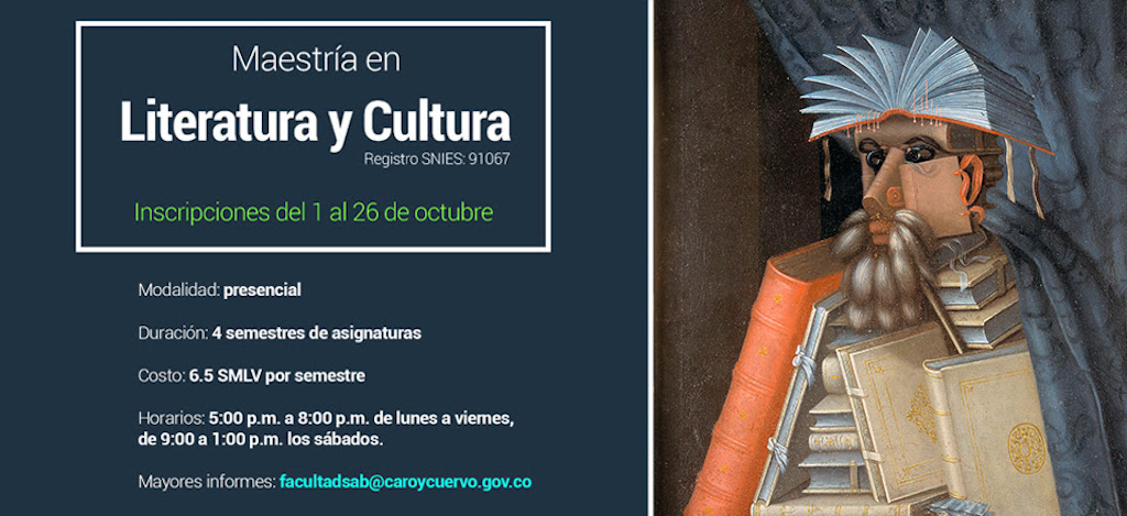 El instituto Caro y Cuervo tiene abierta las inscripciones hasta el próximo 26 de octubre, para la Maestría en Literatura y Cultura, cuyo énfasis está en el estudio de las literaturas latinoamericanas, en especial la colombiana.